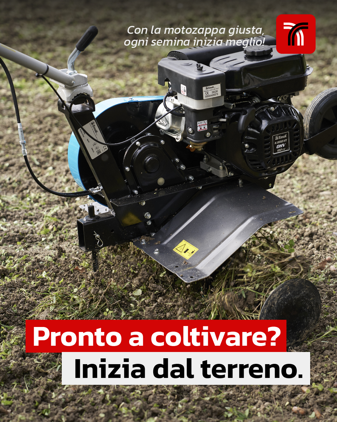Il telaio in acciaio ospita quattro zappette temprate per una larghezza di lavoro di 80 cm e profondità regolabile fino a 30 cm. L’avviamento con decompressionatore manuale facilita le partenze a freddo. La trasmissione a due velocità e retromarcia offre controllo su ogni tipo di terreno.
