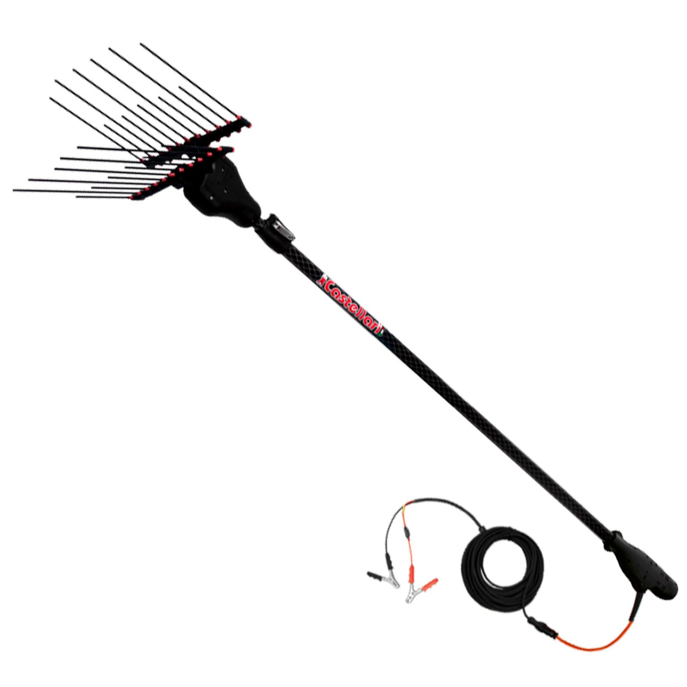 L’asta telescopica in carbonio, estendibile da 230 a 315 cm, unisce resistenza, leggerezza e assorbimento delle vibrazioni, rendendo l’attrezzo maneggevole anche per le operazioni in altezza. La presa professionale e il cavo da 15 metri con pinze di collegamento robuste assicurano un utilizzo comodo e sicuro.