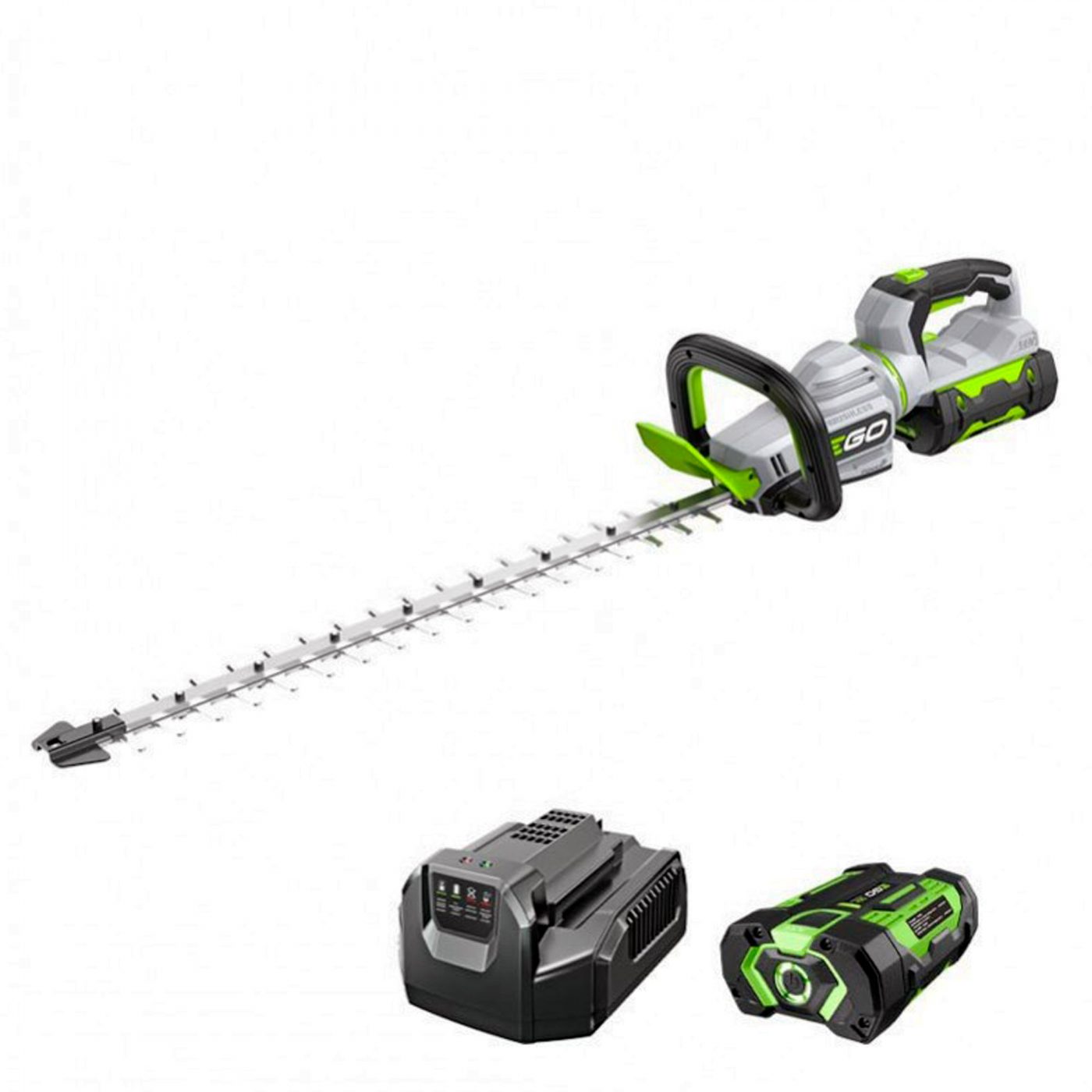 Progettato per la massima sicurezza e comodità, il Tagliasiepi EGO HT2601E include un’impugnatura rotante e un sistema a doppio azionamento che migliorano il controllo e riducono l’affaticamento durante l’uso. La protezione del bordo della lama previene danni da ostacoli come muretti, mentre la protezione di sicurezza e il freno elettrico arrestano immediatamente le lame al rilascio del grilletto, garantendo un utilizzo sicuro anche per i meno esperti.